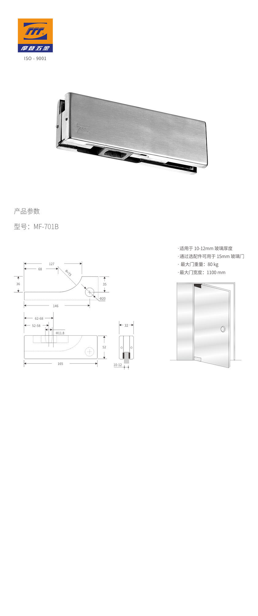 • 產(chǎn)品型號(hào):玻璃門(mén)夾-上夾|MF-701B/MF-901B-CR5