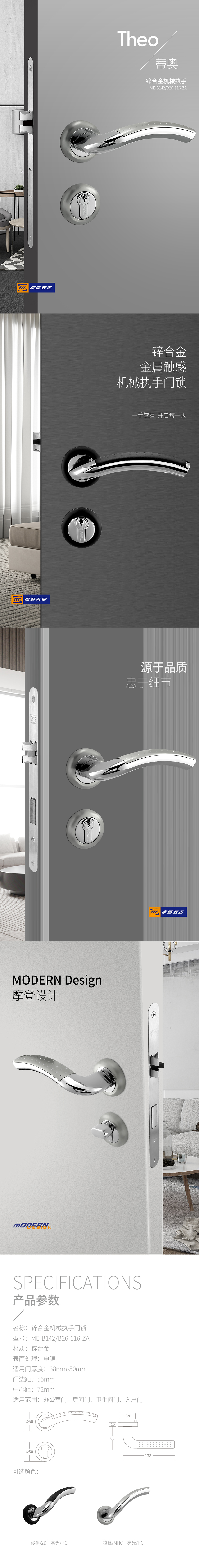 • 產品系列:鋅合金分體門鎖